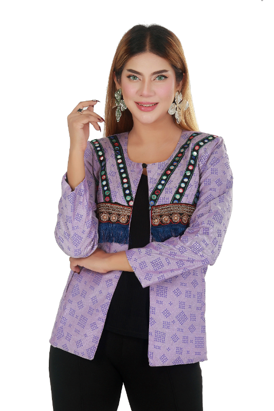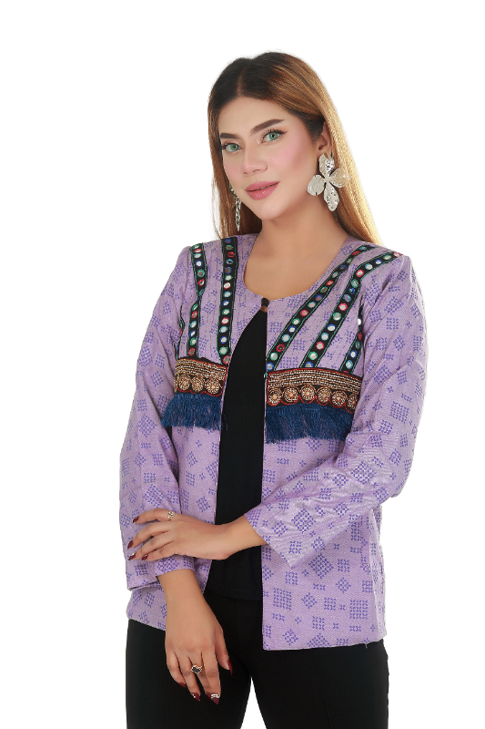 Grace meets warmth – lavender Karchupi blazer with exquisite handwork. Stay cozy in timeless elegance!
